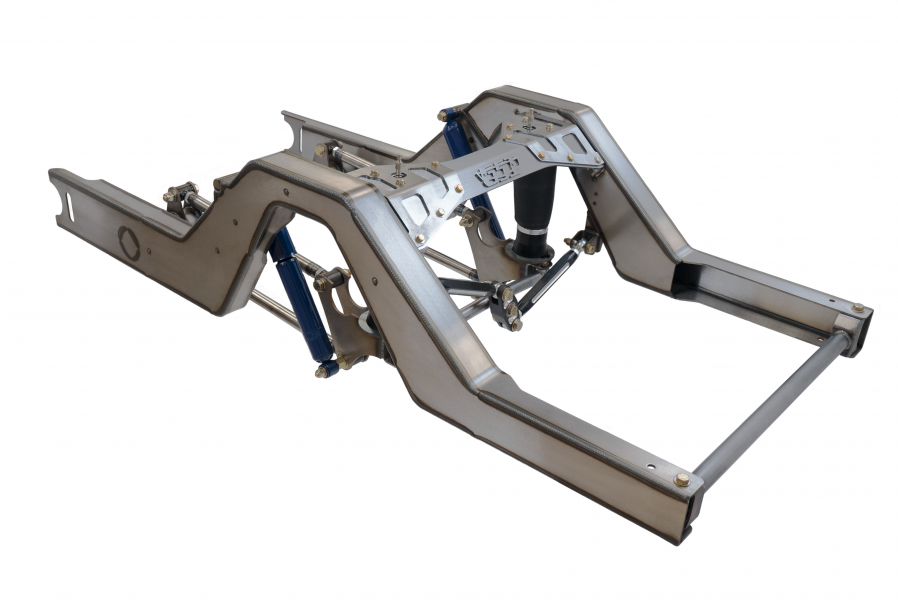 1955-1959 Chevy / GMC Truck Back Half Kit GSI's 1955 to 1959 Chevy Truck Air Ride Back Half Kit includes all the necessary components to replace your old worn-out suspension with our new modern air ride suspension. *This kit requires removal of the rear section of stock chassis. *Every kit includes all necessary hardware and detailed instructions. The rear-end uses Firestone F9000 sleeve-style air bags mounted behind the axle. GSI's 1955 to 1959 Chevy Back Half Kit includes the Billet Watts Link for optimal control of side-to-side axle movement paired with an in-board parallel 4-link to accommodate wide wheels. Everything has been carefully planned and designed to obtain the best drivability and the easiest installation possible. The Chevy Back Half includes: Notch Bridge Four-link Watts link Air Bags (2) Shocks (2) Everything has been designed and manufactured at our facility in Chandler, Arizona. All parts are cut by an Amada Laser and fabricated using the latest CNC equipment to ensure the best quality. CALIFORNIA WARNING: Cancer and Reproductive Harm – http://https://www.p65warnings.ca.gov *CURRENT LEAD TIME 22-26 WKS* Lead times are estimated and can change without notice, to check the current lead time please contact the shop at 480-940-1806.